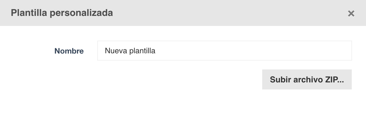 Luego se debe asignar un nombre a la plantilla y subir el archivo ZIP que contiene el archivo HTML y el contenido asociado que necesite, como estilos a imágenes.