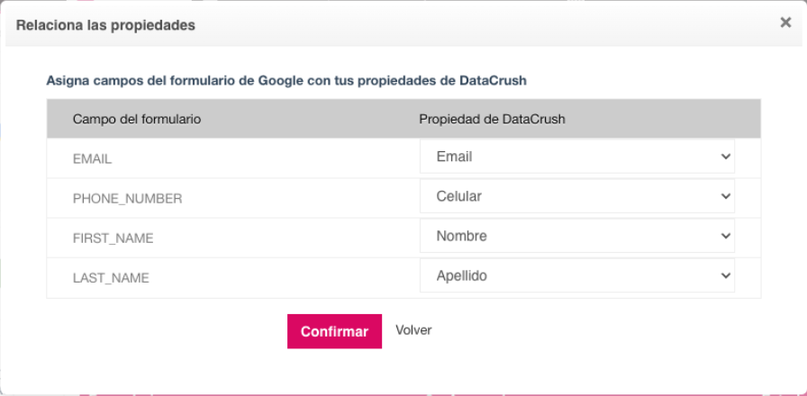 Los contactos que serán ingresados en DataCrush corresponden a los que completen el formulario posteriormente a la activación de esta integración, los contactos que completaron el formulario anterior a la integración no serán importados.