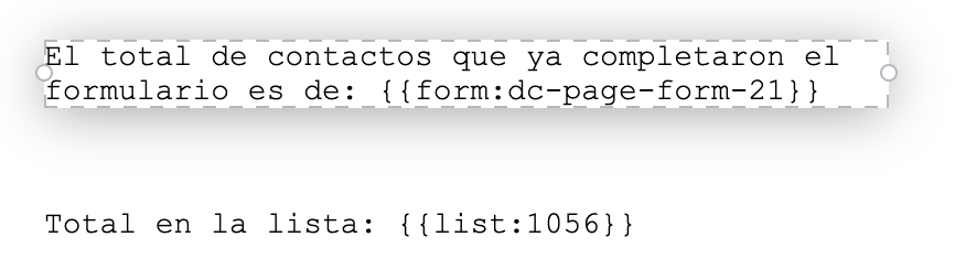 Para mostrar en tu página totales relacionados con la cantidad de contactos que completaron un formulario o relacionados con una lista específica, puedes utilizar etiquetas especiales que te permiten consultar estos valores.