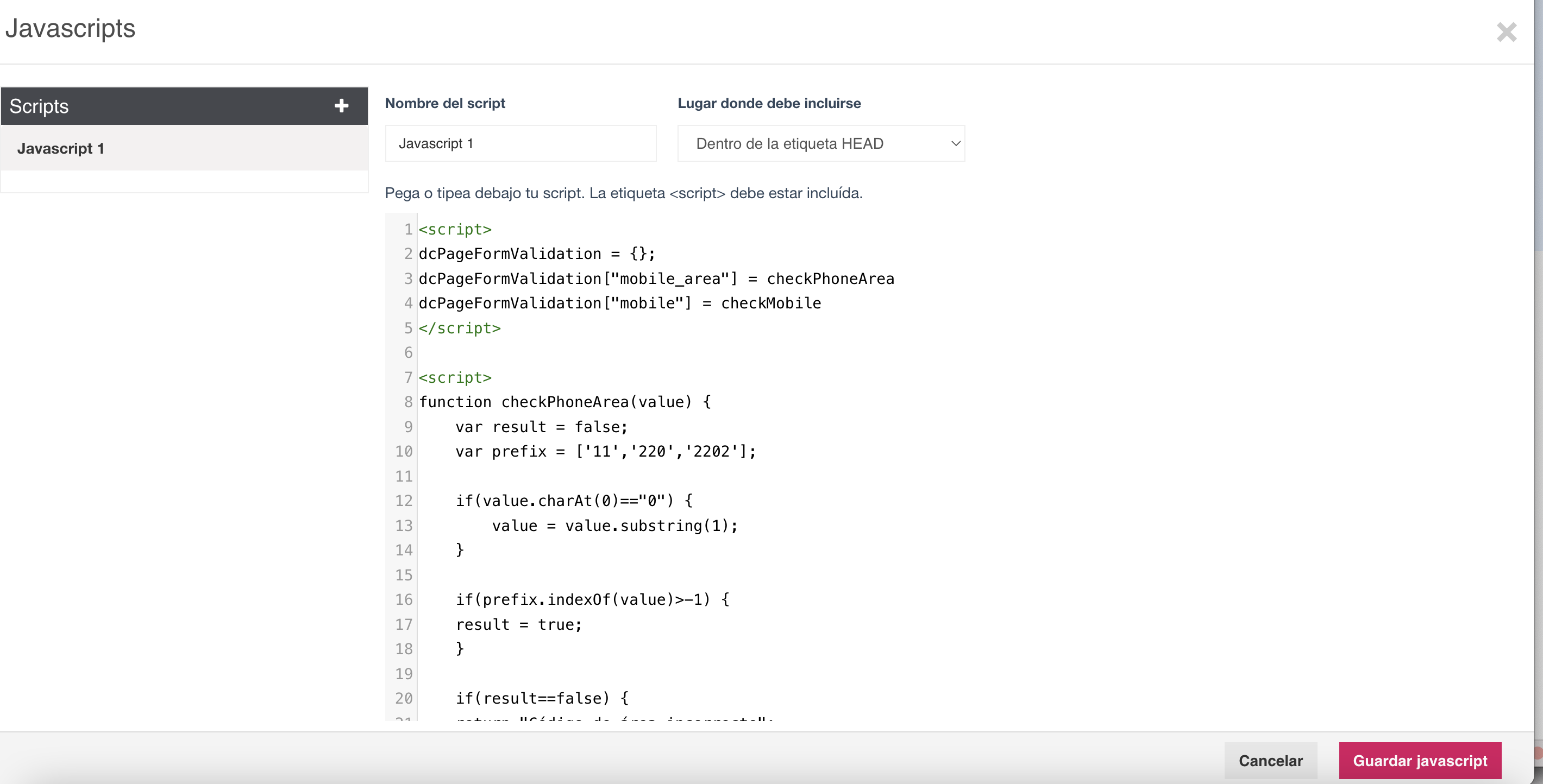 Si deseas realizar validaciones específicas dentro de tu formulario, como por ejemplo, validar si un código de área es correcto, o cualquier otra validación que desees agregar, debes seguir los siguientes pasos.