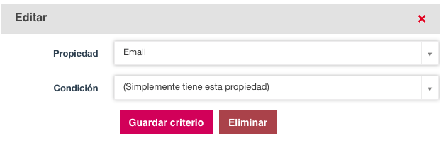 3. Selecciona la propiedad "Email" y la condición "Simplemente tiene esta propiedad"